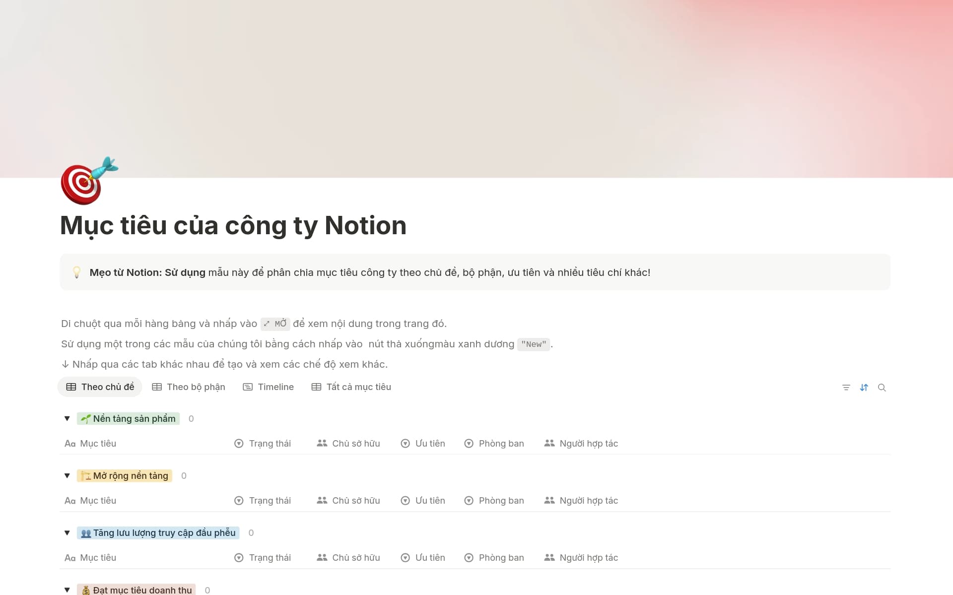 Khám phá những cách mới để sử dụng Notion trong công việc và cuộc sống.Công việc mẫu